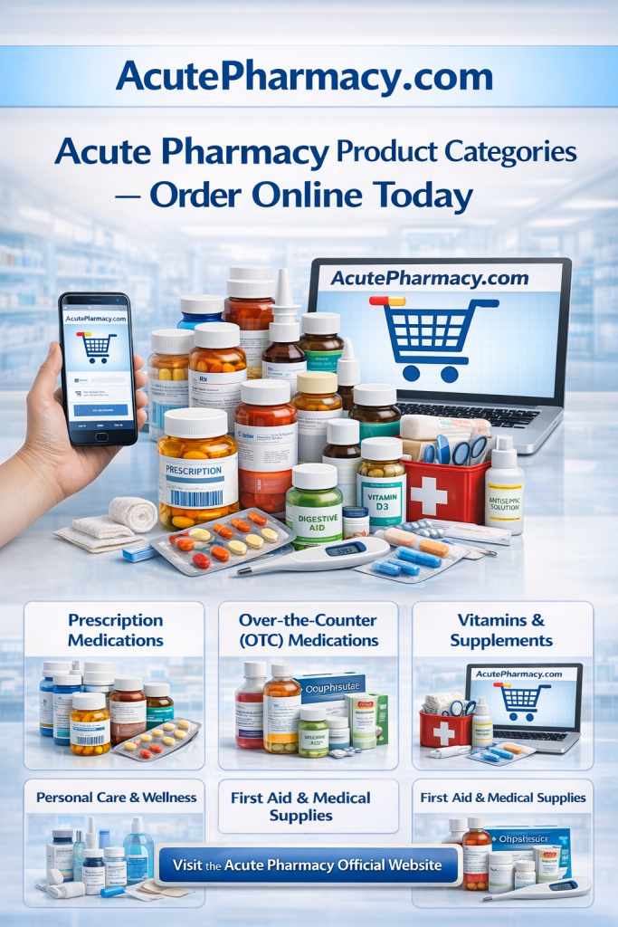 The Acute Pharmacy product catalog includes everything from prescription medications and OTC remedies to vitamins, personal care items, and first aid supplies. By visiting the Acute Pharmacy official website, customers can explore these categories, enjoy the convenience of online shopping, and have products delivered directly to their homes.
